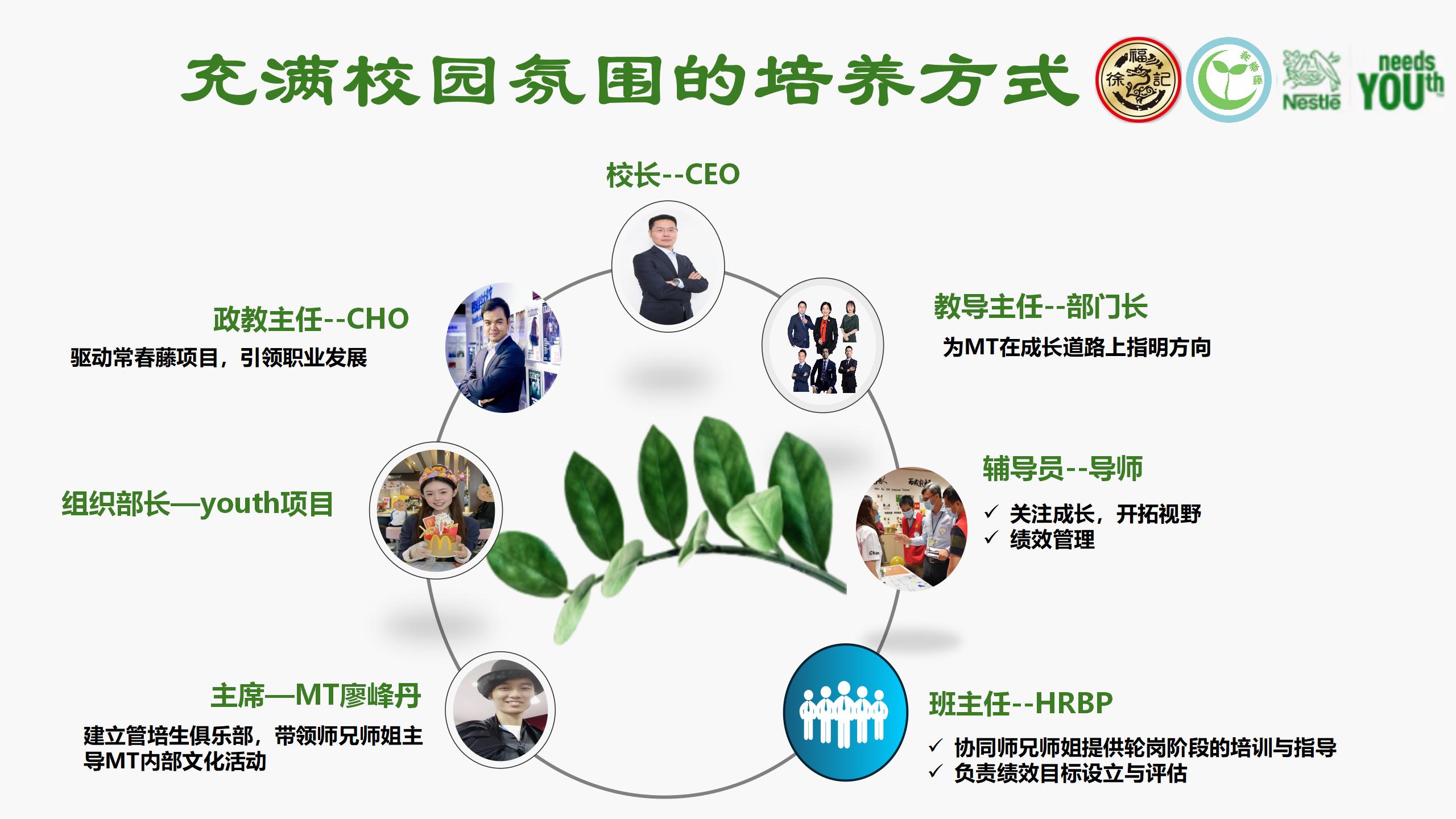 在校园氛围的培育下,管培生将如常春藤般不断汲取养分,攀援向上,最终成长为在任何时候都能绽放光彩的青年人才(Youth)。